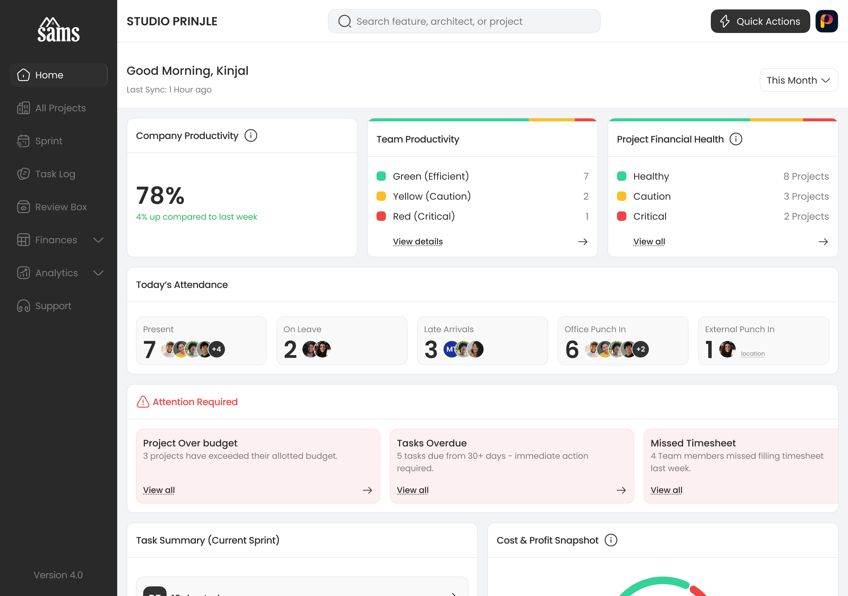 SAMS is built specifically for architects and interior designers to manage projects, teams, time, and finances from a single platform, without pulling focus away from design work.``